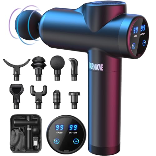 BURNNOVE Pistola de Masaje Negro Masajeador Muscular Profundo 8 Cabezales 99 Velocidades Batería 2500mAh Pantalla LCD Estuche Portátil ASPECTOS CLAVE