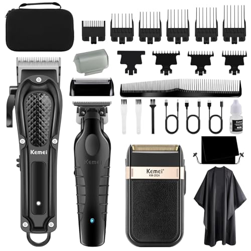 KEMEI Cortapelos profesional para hombres, inalámbrico, completo, barber Clipper T-Blade Trimmer Set de maquinilla de afeitar eléctrica, kit completo con 9 peines guía ASPECTOS CLAVE