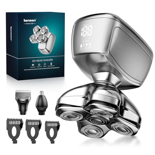 Kensen Afeitadora Cabeza Hombre 3 en 1 ASPECTOS CLAVE (Cabezales Magnéticos 5D, Cortapelos y Nariz, Afeitado en Seco y Húmedo, Impermeable IPX6, Carga USB-C)