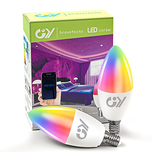 GY E14 Bombilla LED RGBW – 2700K-6500K Regulable C37 Vela Bombilla Inteligente ASPECTOS CLAVE (2 Unidad) Alexa Compatible con Google Home, TUYA Smart
