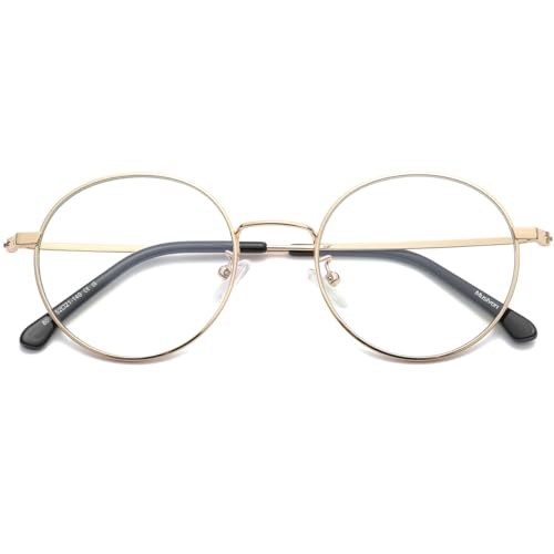 Musivon Gafas de filtro de luz azul para hombre y mujer ASPECTOS CLAVE (sin grosor, marco de metal redondo, dorado, 145 mm)