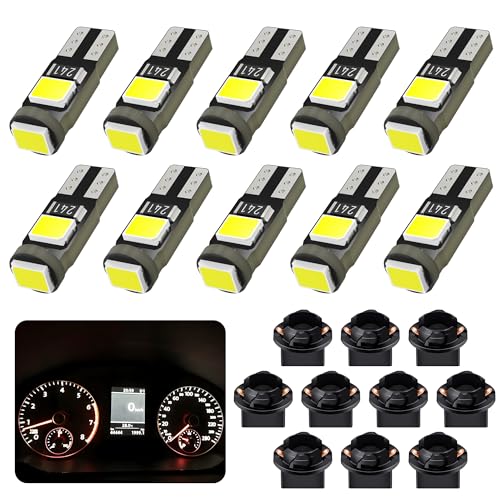 AGLINT T5 LED Bombillas W3W 2721 27 37 286 PC74 con Enchufe 12V 3SMD Reemplazo para Coche LED Luces Interiores Tablero Instrumento Blanco 10 Piezas ASPECTOS CLAVE