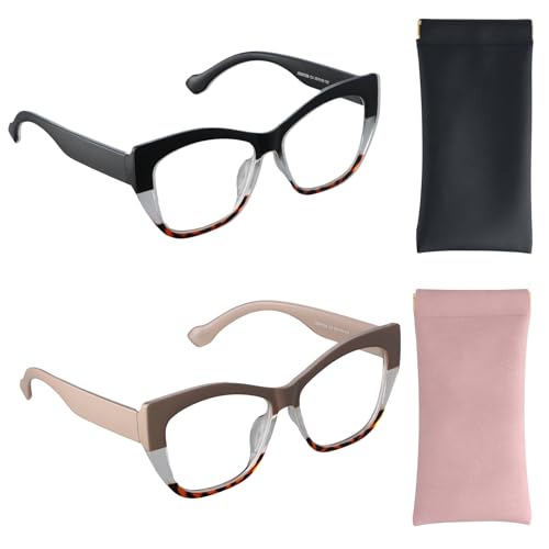 Anseom 2 Piezas Gafas con Bloqueo a Luz Azul ASPECTOS CLAVE (Gafas de Lectura para Mujer Hombre, Gafas de Ojo de Gato de Gran Tamaño, Gafas Moda Ligera para Gaming Lectura Computadora)