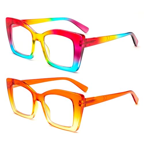 MMOWW Paquete de 2 gafas de lectura de gran tamaño para mujeres con montura cuadrada, estilo de moda, anti luz azul (2PCS, +1.5) ASPECTOS CLAVE