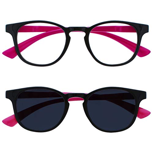 OPULIZE Niños Paquete Doble Luz Azul Gafas Con Matching Gafas De Sol Niños Muchachas Años 6+ Negro Neon Rosa BS47-F ASPECTOS CLAVE