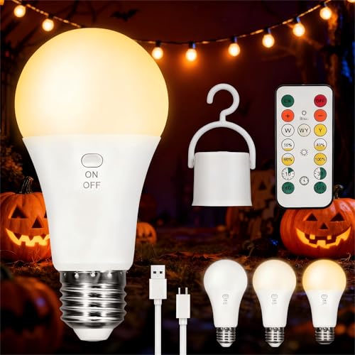 Kambo Bombilla LED E27 recargable USB-C 7W con botón de control, regulable, batería gancho, iluminación emergencia para interior y exterior, lámpara LED camping, ASPECTOS CLAVE