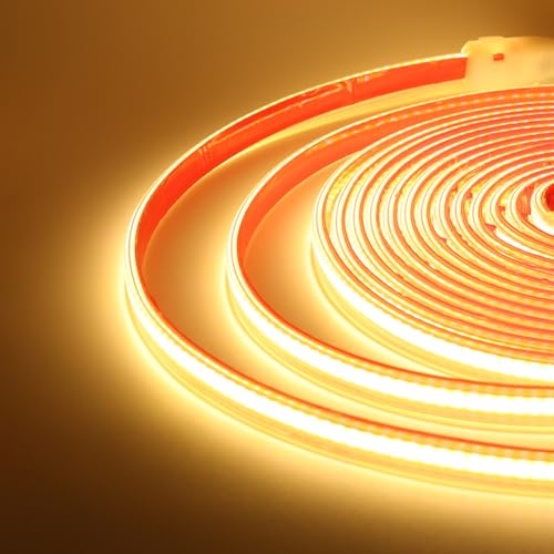GOMING Tira LED COB 12V Blanco Cálido 3000K 5M 11W/M CRI 93+ Luminiscencia Lineal Alta Densidad 312LED/M No Impermeable IP20 Luces LED para Sala de Estar Dormitorio y Más ASPECTOS CLAVE
