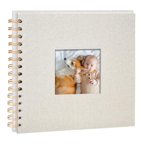 Vienrose Álbum de Fotos Scrapbook de Lino ASPECTOS CLAVE (Or) Album de Recuerdos con 40 Páginas Blancas DIY para Viajes en Familia Boda Navidad, Beige ASPECTOS CLAVE