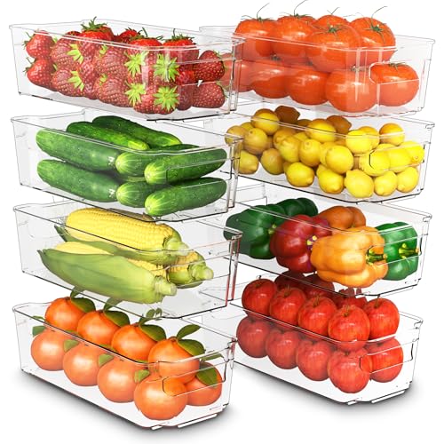 KICHLY Organizadores para la despensa ASPECTOS CLAVE – Juego de 8 -Compartimentos de almacenamiento para cocina, despensa, armarios, encimeras y refrigerador – sin BPA (Transparente)