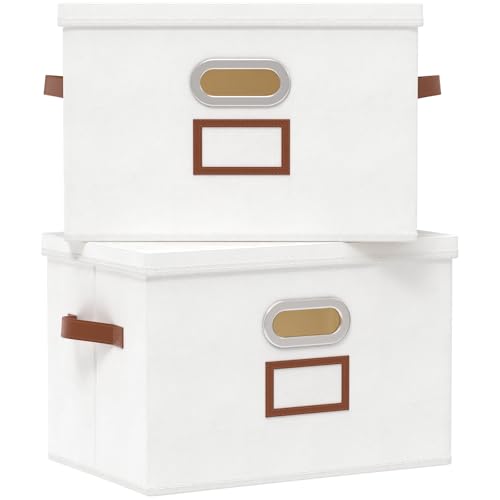OUTBROS Juego de 2 Cajas de almacenamiento con tapas, cestas plegables de la organizadora de cubos, Contenedores de almacenaje decorativo – ASPECTOS CLAVE
