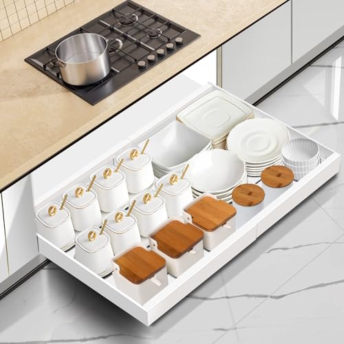 Mimoke Organizador de Armario Extensible – Cajón Telescópico con Pegamento – Organizador de Cajones para Cocina/Baño (Blanco) ASPECTOS CLAVE
