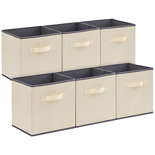 Lifewit Juego de 6 Cubos de almacenamiento plegables ASPECTOS CLAVE (33 x 33 x 33 cm, 36L, Beige)