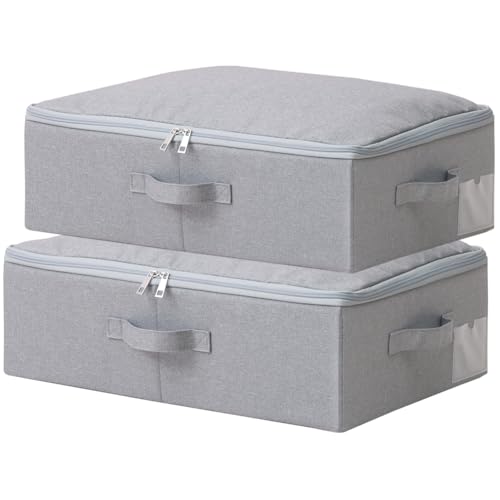 Paquete de 2 cajas de almacenamiento planas plegables con tapa suave, a prueba de polvo, álbumes, entrada, cubos organizadores de alimentos, gris oscuro ASPECTOS CLAVE