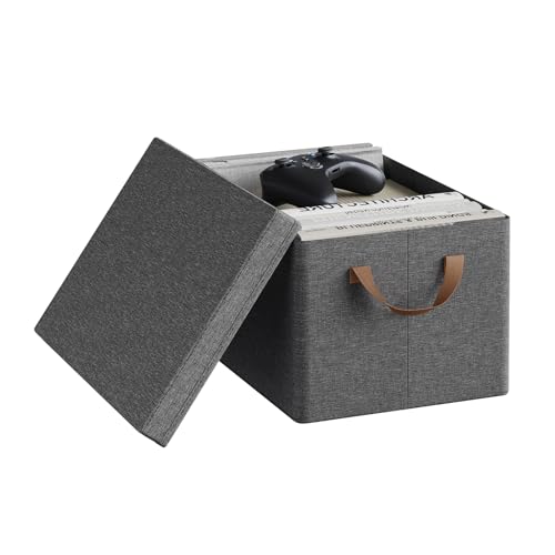 SONGMICS Cajas Almacenaje ASPECTOS CLAVE: Tejido Oxford y Tejido Aspecto Lino, Plegables, Portaetiquetas Metálicos, Gris Paloma ROB240G02