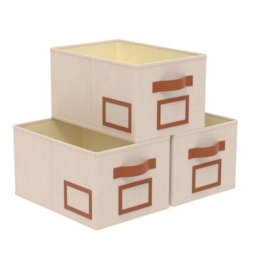 GUOHNHE Cajas de Almacenaje con Tapa, Cestas Organizadoras de Tela Plegables, Cubos de Almacenamiento con 2 Asa – ASPECTOS CLAVE (Beige, Paquete de 2, para Dormitorio, Sala de Estar, XSNY12BEM-2)