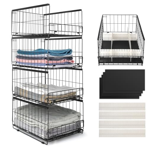 Wuciray 3/4 pcs Organizador Armario Ropa Cajas Almacenaje con Divisores Apilable Separadores Armario Metal ASPECTOS CLAVE