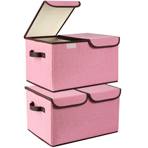 OUSFOT Caja Almacenaje con Tapa Tela 30L 2 Piezas, Plegable y Apilable Organizadores con Divisores Extraíbles Rosa – Aspectos Clave