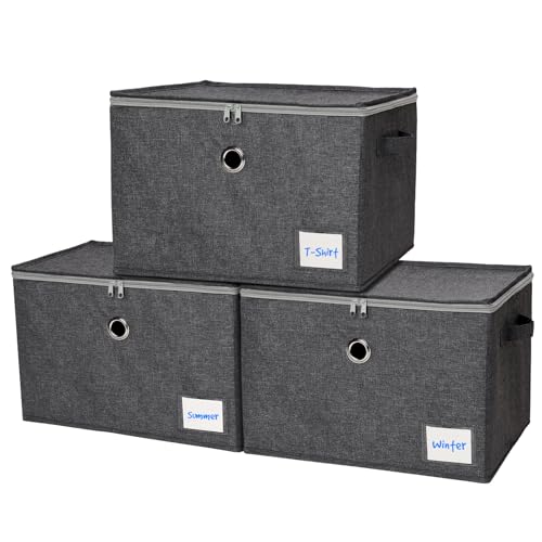 Seaforie Cajas de Almacenamiento con Tapa ASPECTOS CLAVE (Juego de 3 Cajas Organizadoras Plegables con Tapa, Caja de Tela con Asas para Ropa)