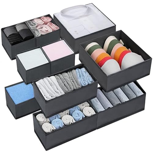 Evance 10 Cajas Organizador de cajones Tela organizadores Almacenamiento Plegable para Sujetadores Bragas Calcetines Gris (12PCS-Gris) ASPECTOS CLAVE