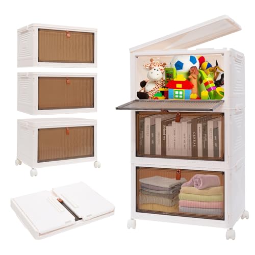 Ark miido Caja Almacenaje con Tapa, 3 Caja Plegable Plastico con Ruedas ASPECTOS CLAVE Casa y Oficina Almacenamiento Apilables con Tapa y Puerta ASPECTOS CLAVE