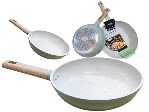 Sult&co – Set de 3 Sartenes Antiadherentes Libres de Pfoa sin Toxicos Rapida Inducción Vitroceramica y Gas (20 + 24 + 28 cm) Aluminio Fundido sin Teflon (20 + 24 + 28) ASPECTOS CLAVE