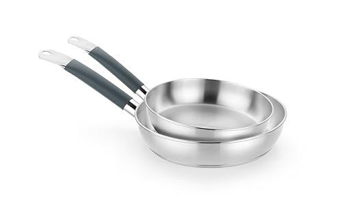 BRA Master ASPECTOS CLAVE (Set de sartenes 24-28 cm, acero inoxidable, Sin Antiadherente, Sin PFOA, Full Induction, Apta para todo tipo de Cocinas, Mango acero inoxidable recubierto de Silicona)