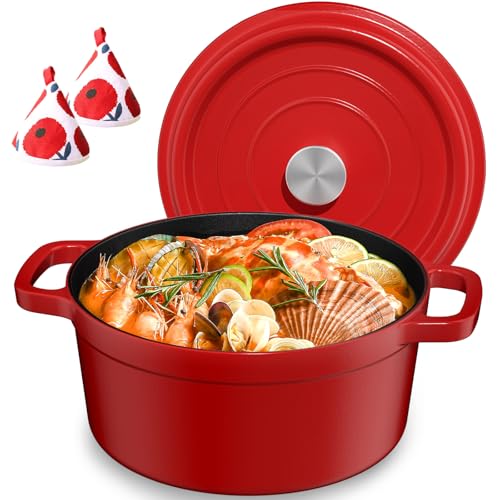 YASHE Olla de Hierro Fundido con Tapa, Horno Holandés Antiadherente, cazuela hierro fundido, Cazuela Redonda Esmaltada para Sopas, Guisos y Horneado, Roja ASPECTOS CLAVE