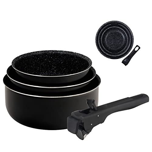 Bergner – Juego de 3 sartenes antiadherentes de aluminio prensado – Apto para inducción – Mango extraíble – Negro ASPECTOS CLAVE