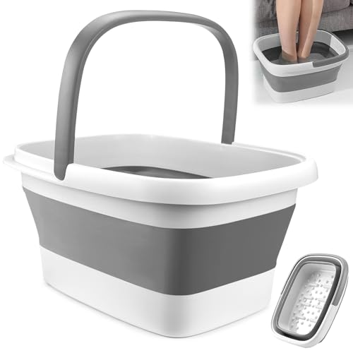 Rierousy Baño de Pies Plegable – Bañera de 15 L de Capacidad Con Burbujas y Masaje para Pedicura y Alivio de la Fatiga (Blanco Grisáceo) ASPECTOS CLAVE